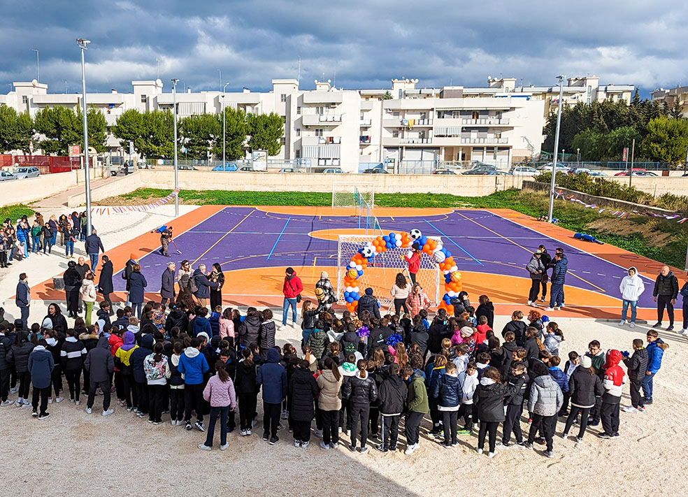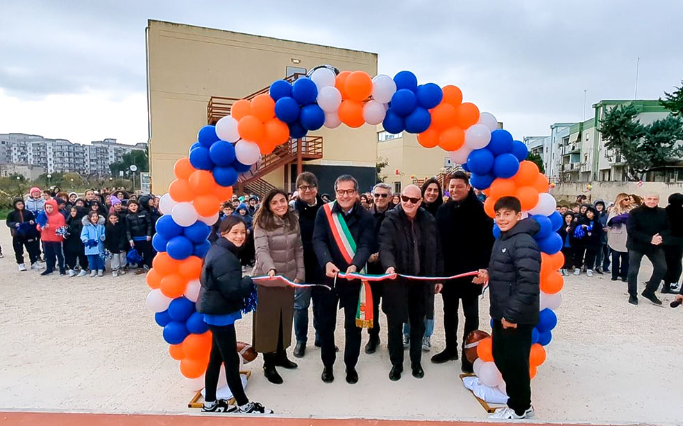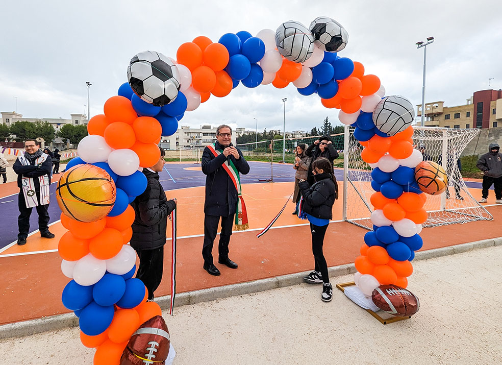 “Siamo orgogliosi di rendere ufficialmente operativo il nuovo impianto sportivo. Tutta la comunità scolastica potrà beneficiare di questo campo, dove i ragazzi potranno praticare diverse discipline sportive. Per questo, siamo assolutamente convinti dell’importanza di investire nelle infrastrutture che promuovono uno stile di vita sano e attivo, favorisce integrazione e inclusione all’insegna dei valori dello sport. Questo nuovo impianto è destinato a diventare un luogo di aggregazione per cittadini di tutte le età”, ha spiegato il Sindaco Angelantonio Angarano.