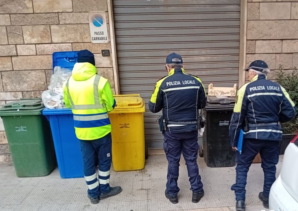 Continuano i controlli finalizzati a verificare il corretto conferimento dei rifiuti in Città, effettuati da agenti della Polizia Locale unitamente a personale ausiliario dell’azienda che gestisce l’igiene urbana.