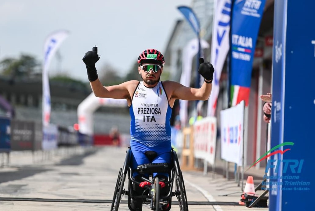 Un nuovo prestigioso alloro arricchisce il già pingue palmares del biscegliese Mauro Preziosa. Portacolori della FitCenter Triathon capitanata da Beppe Scardigno, Preziosa si è laureato nello scorso weekend Campione Italiano di Paraduathlon nella categoria PTWC H2 in occasione della competizione tricolore ospitata all’Autodromo Internazionale Ferrari di Imola. Dopo l’argento conseguito lo scorso anno, il biscegliese classe 1980 ha potuto mettere al collo la medaglia dal metallo più prezioso in virtù di una prestazione tenace e determinata lungo il percorso che contemplava un primo tratto in carrozzina sulla distanza di 3 chilometri, snodatosi in parte all’interno dell’autodromo e in parte nel parco che costeggia l’impianto, quindi due giri completi del tracciato intitolato ad Enzo e Dino Ferrari per complessivi 10 chilometri da percorrere in handbike, infine il segmento da 1,5 chilometri nuovamente in carrozzina.