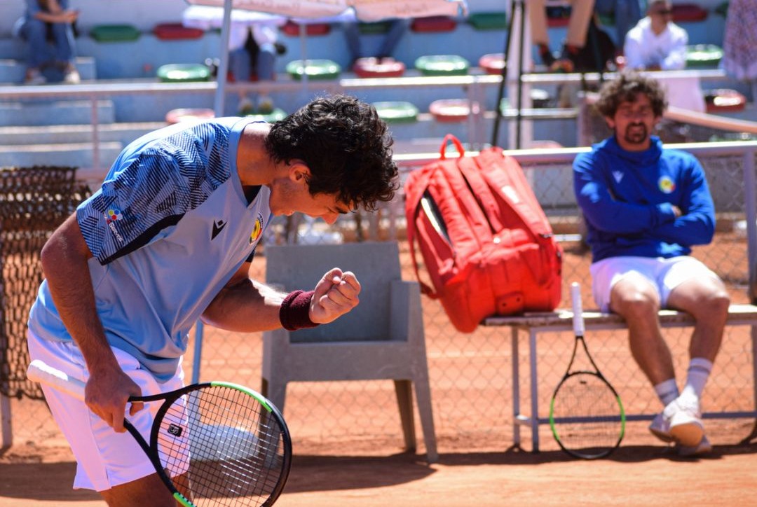 I tennisti capitanati da Kikko Sasso hanno incamerato con grande autorevolezza i 3 punti in palio imponendosi per 5-1. A segno tutti e quattro i singolaristi: Francisco Bahamonde ha liquidato con un duplice 6-1 il malcapitato Alessandro Laino, emulato nella forma e nella sostanza da Manolo Baldini (anch’egli ha concesso appena un game per set a Marco Milano). Si sono decisi al terzo set e con due splendide rimonte, invece, gli altri due incontri di singolare: Valentin Florez ha avuto la meglio sul 29enne tedesco Maik Steiner (4/6, 6/4, 6/0), mentre Matias Fernandez (in foto) si è aggiudicato il duello a spese del 32enne svizzero (bresciano d’origine) Luca Margaroli (4/6, 7/5, 6/4).