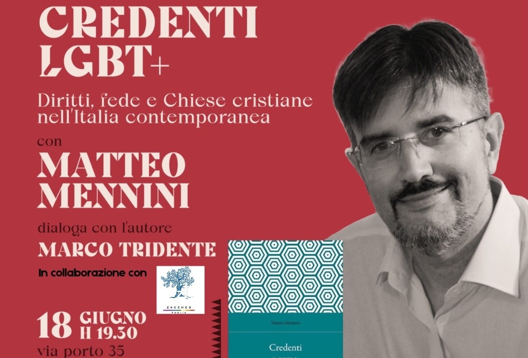 Matteo Mennini presenta a Bisceglie il libro “Credenti LGBT+. Diritti, fede e Chiese cristiane nell’Italia contemporanea”. Appuntamento martedì 18 giugno alle 19.30 alle Vecchie Segherie Mastrototaro che ospitano l’iniziativa organizzata in collaborazione con Epass.