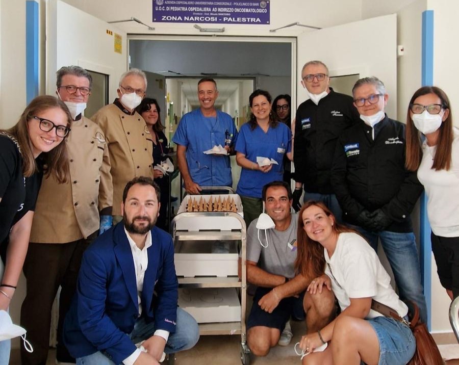 Per il terzo anno consecutivo, l’Associazione Pasticcerie Storiche del Sospiro di Bisceglie, con Il Presidente Mauro La Notte, Il Direttore Sergio Salerno Vicepresidente Pasquale Dell’Olio, ha portato tra le corsie un momento di festa, realizzando quest’ultimo una “speciale” versione del celebre dolce.