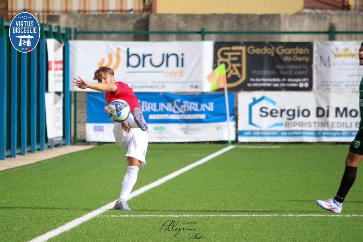 La compagine biscegliese, pur priva degli infortunati Vito Quacquarelli e Di Franco, oltre che dello squalificato Papagni, ha approcciato la sfida con lo stesso piglio del derby vinto sette giorni prima a spese del Don Uva e hanno sbloccato il risultato al 23’ grazie ad un gran gol siglato da Amorese, pienamente ristabilito dagli acciacchi e tornato ad indossare una maglia da titolare. 0-1 all’intervallo con la Virtus ben disposta sul terreno di gioco.