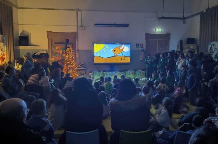 La serata è iniziata con la proiezione di un cortometraggio a tema natalizio, seguito da un laboratorio in cui i bambini si sono potuti cimentare nella creazione di animazioni in stile cartoon. Successivamente, i bambini hanno partecipato a un gioco collettivo sulle emozioni e hanno assistito alla proiezione di tre cortometraggi prodotti nell’ambito dei progetti cinema del I Circolo. Presente per l’occasione anche Antonio Musci, responsabile scientifico dei progetti cinema della “De Amicis”: una costante e proficua collaborazione che dura ormai da diversi anni.