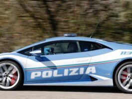 Il Pullman Azzurro e la Lamborghini della Polizia di Stato al...